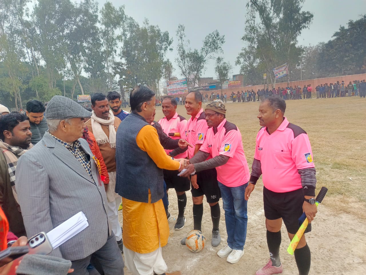 मैच के मुख्य अतिथि सांसद देवरिया शशांक मणि त्रिपाठी,विधायक असीम कुमार,विनय राय ने फीता काट कर खिलाड़ियों से परिचय प्राप्त किया। गुरूवार को एक बजे से कानपुर एवं यूपी इलेवन के बीच फाइनल मुकाबला खेला जाएगा। 31 वर्षों से आयोजित होते आ रहे इस प्रतियोगिता का दूसरा सेमीफाइनल फुटबॉल एकेडमी पीपी गंज एवं यूपी इलेवन बलिया के बीच खेला गया मध्यांतर तक दोनो ही टीमें जुझारू खेल का प्रदर्शन करते हुए एक दूसरे प जवाबी हमले करते रहे।लेकिन दोनों तरफ से कोई गोल नहीं हो सका । दूसरे हाफ टाइम में दोनों ही टाइम बराबरी पर रही। निर्धारित समय के बाद आयोजकों ने दस मिनट का अतिरिक्त खेल खिलाया।जिसमें कोई गोल नहीं ही सका। अंत में ट्राई ब्रेकर में यूपी इलेवन ने 6- 5से हराकर फाइनल में प्रवेश कर लिया।