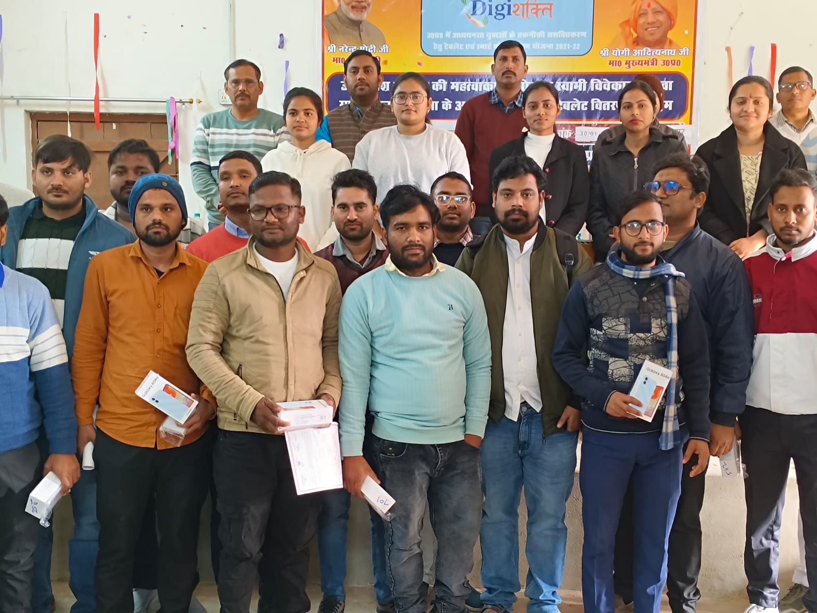 कार्यक्रम के मुख्य अतिथि सदर ब्लाक प्रमुख प्रतिनिधि विवेक कुमार गुप्ता ने कहा कि यह सरकार की महत्वाकांक्षी योजना है। स्मार्टफोन का अच्छे कार्य एवं पढ़ाई के लिए सदुपयोग करें, तभी छात्र एवं छात्राएं स्मार्टफोन का तकनिकी उपयोग कर उच्च शिक्षा में श्रेष्ठता अर्जित कर सकेंगे। विशिष्ट अतिथि भाजपा के जिला सयोंजक शिक्षक प्रकोष्ट डा. अमित प्रताप सिंह ने कहा कि इस योजना से ऐसे छात्र जिनके पास लैपटॉप या कंप्यूटर स्मार्टफोन खरीदने के पैसे नहीं हैं, उन्हें स्मार्टफोन सरकार देकर उनके भविष्य को उज्जवल बनाने का काम कर रही है, जो सराहनीय है। कार्यक्रम की अध्यक्षता प्राचार्य डा. प्रेमचंद ने किया। डा. धर्मेंद्र मौर्या, मनीष त्रिपाठी, हरिराम वर्मा, मोहनलाल आदि उपस्थित रहे।