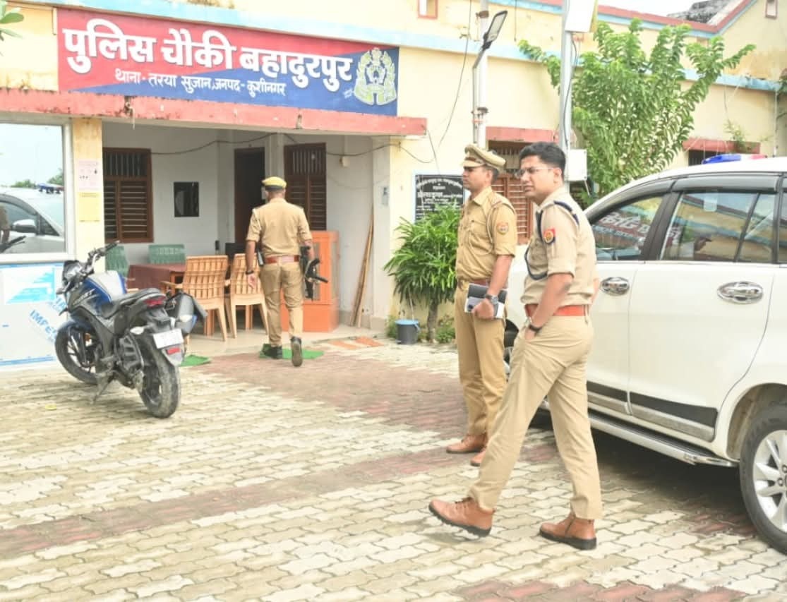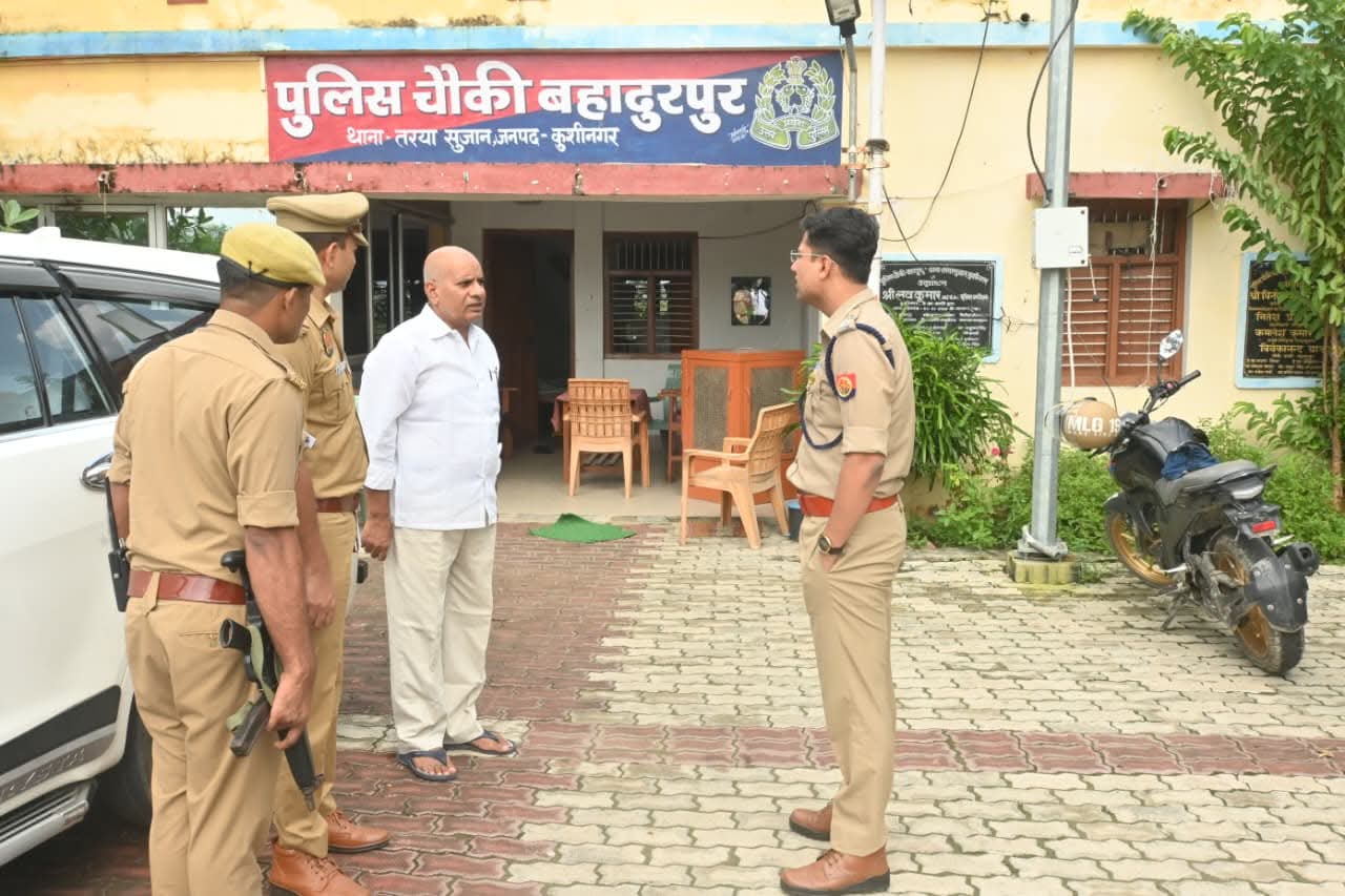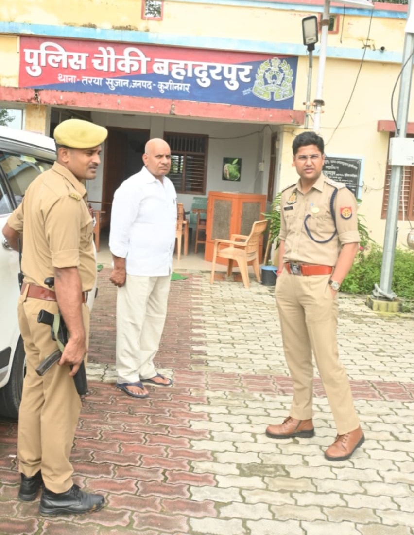 पुलिस अधीक्षक कुशीनगर, केशव कुमार द्वारा थाना तरयासुजान क्षेत्रान्तर्गत बिहार राज्य के सीमावर्ती बहादुरपुर चौकी का औचक निरीक्षण किया गया। इस दौरान उत्तर प्रदेश-बिहार सीमा पर स्थापित बैरियर सहित सुरक्षा व्यवस्थाओं का गहन निरीक्षण किया गया।